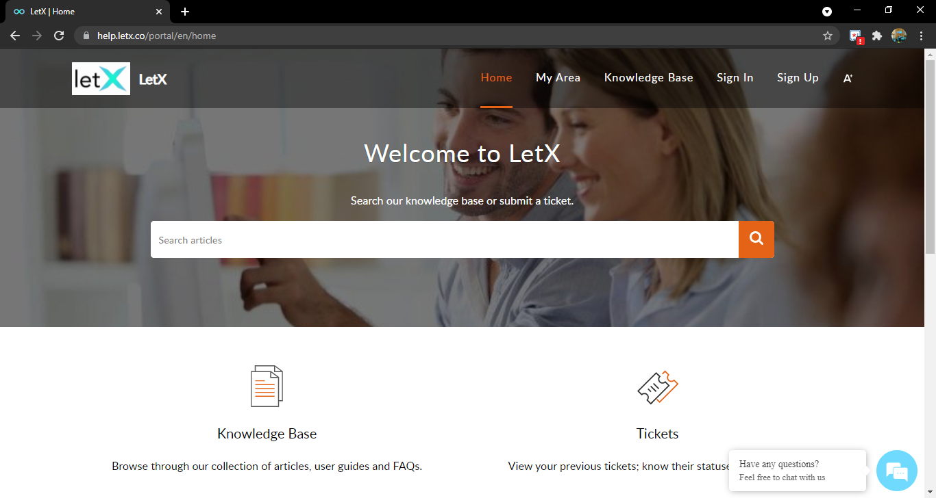 2. Click on the Knowledgebase to access our LetX Knowledge Base of all products.