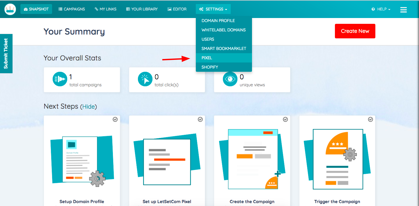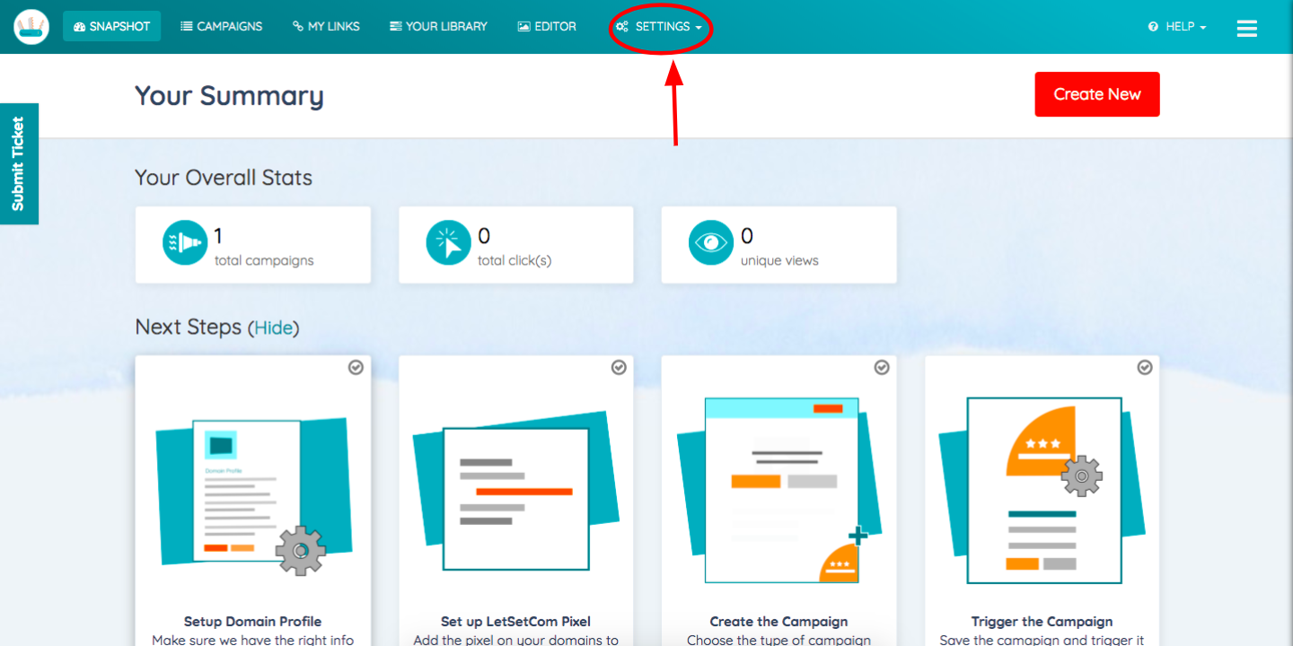 STEP 1: In your LetSetCom Dashboard, go to “Settings”.