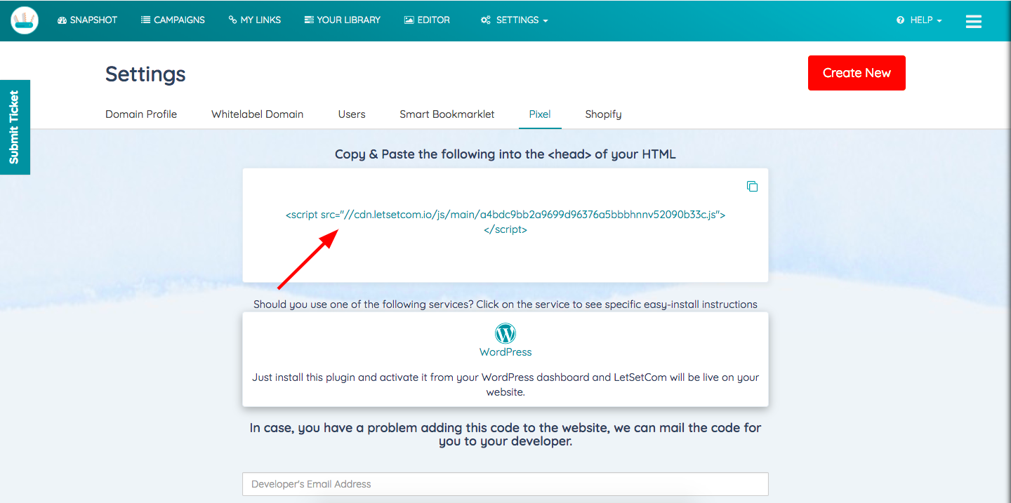 STEP 3: Now, you need to install the LetSetCom code to your website where you wish to display the LetSetCom Campaigns. You can install the code/pixel in 2 ways: