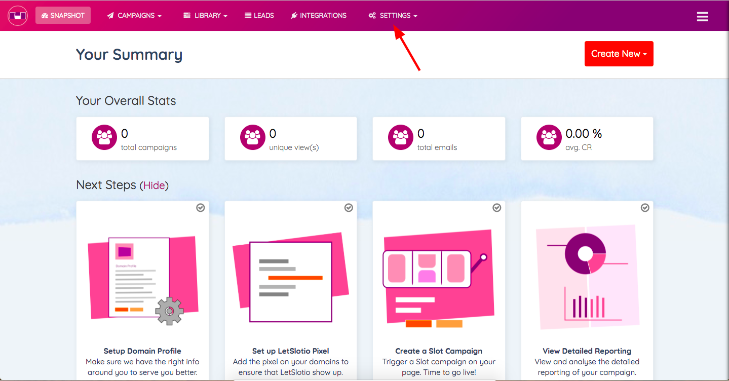 STEP 1: In your LetSlot.io Dashboard, go to “Settings”.