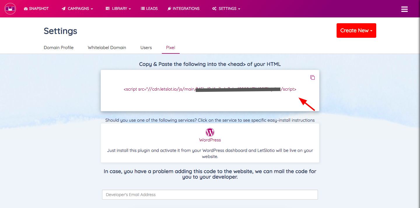 Add LetSlot.io Code/Pixel to your Website