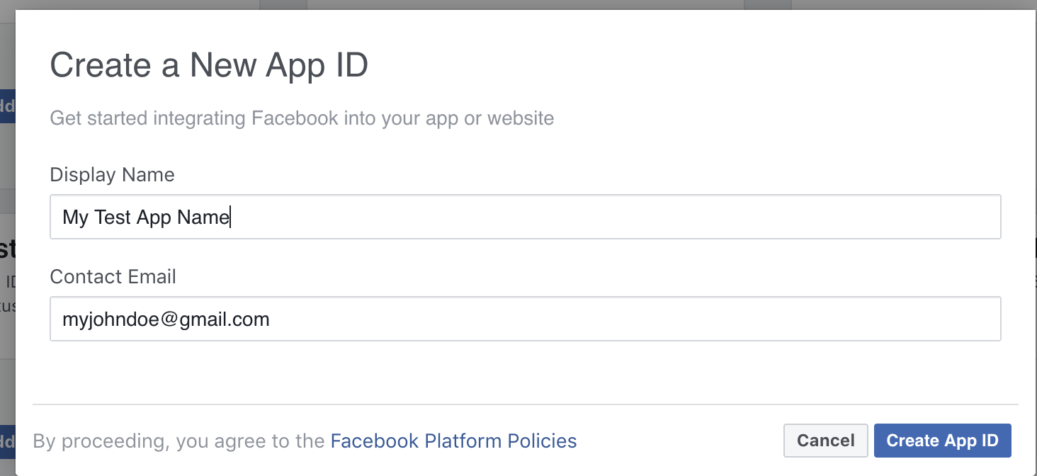 Step 1: In your Facebook Developer’s account, go to My Apps >>Create App >> Enter Display and Contact name and then, click on Create App ID.