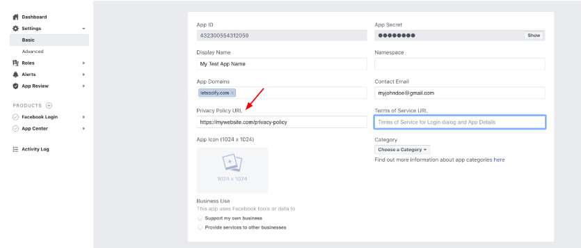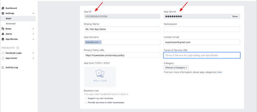 Step 6: Now, go to Settings >> Basics and copy the App ID and App Secret and paste it into your LetConvert dashboard by going to Reviews >> Review Sources >>Add Review Source>> Facebook >> Add Your App Id and Secret and Click on Continue