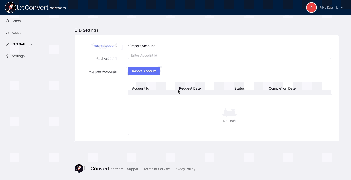 Under this section you can import your account which was your sub account in your LetConvert dashboard.