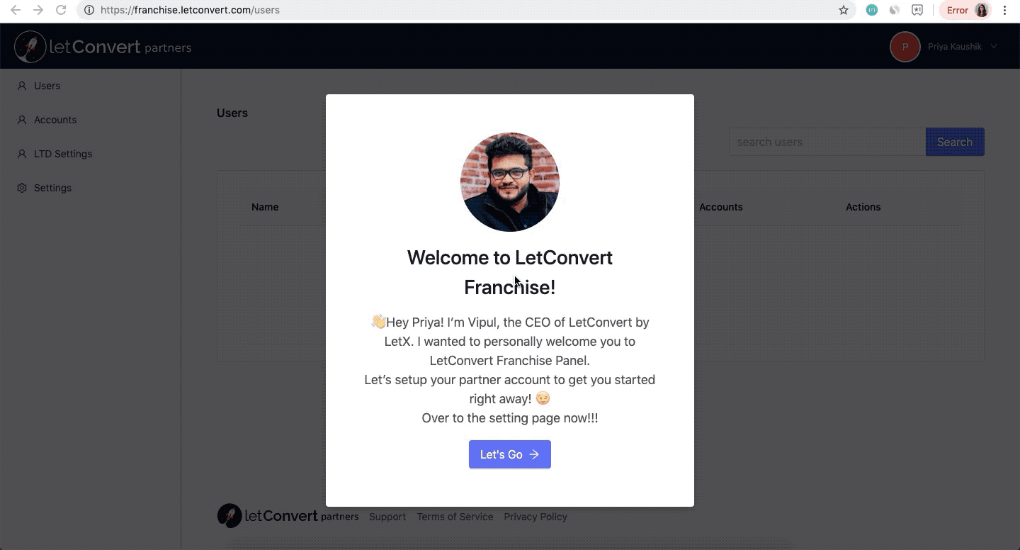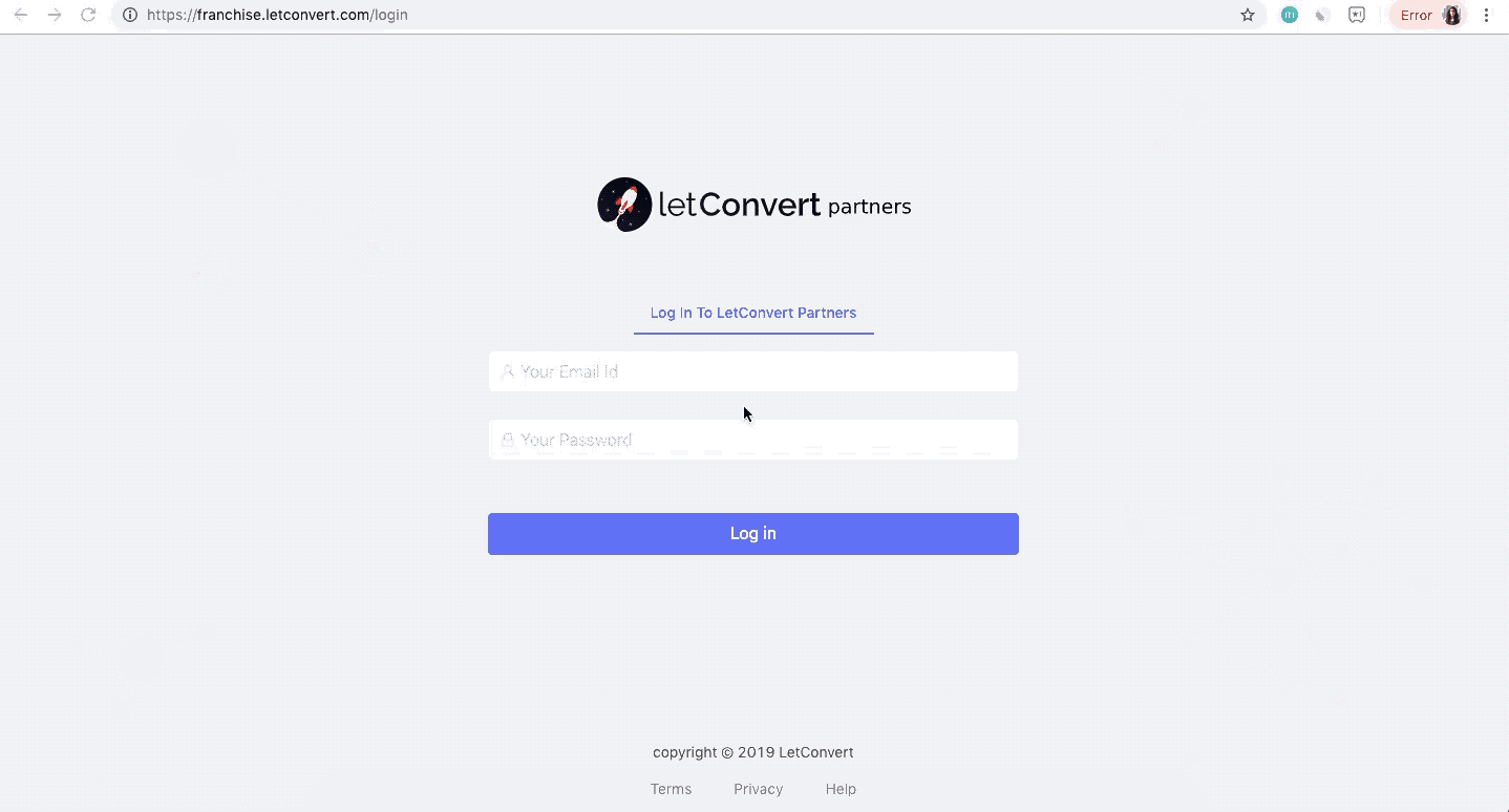 Please go to franchise.letconvert.com and enter your LetConvert Franchise login credentials (which you must have received via email).