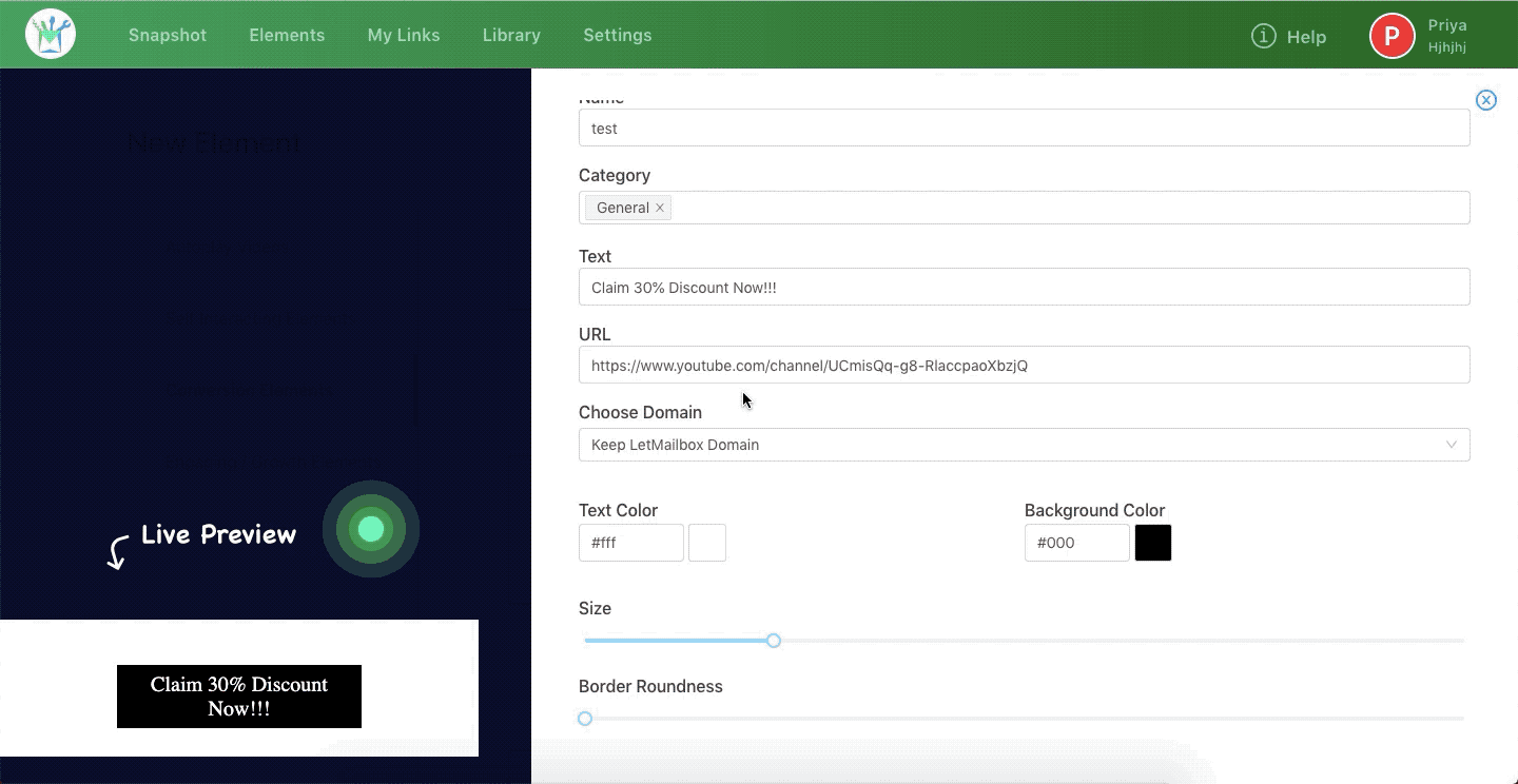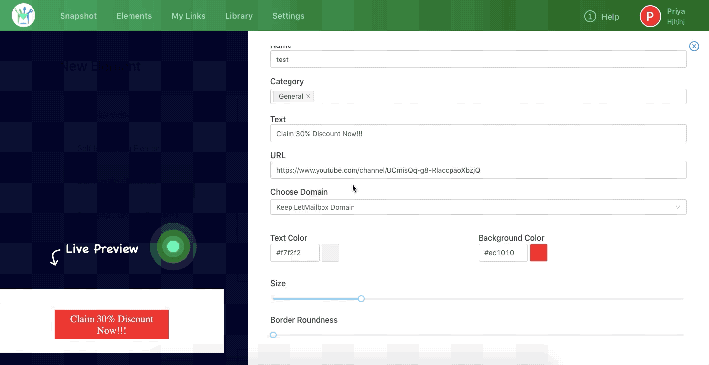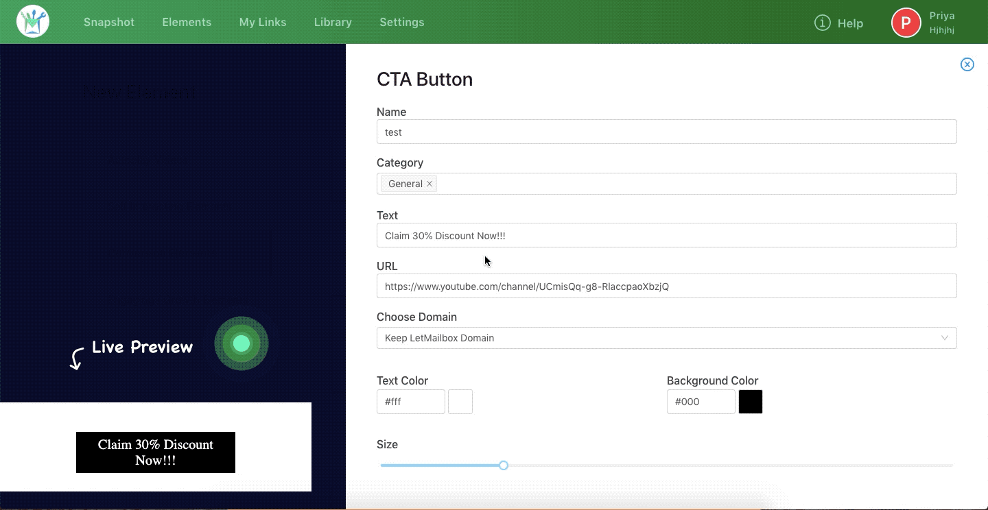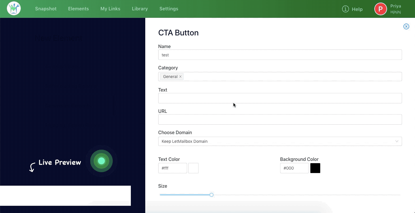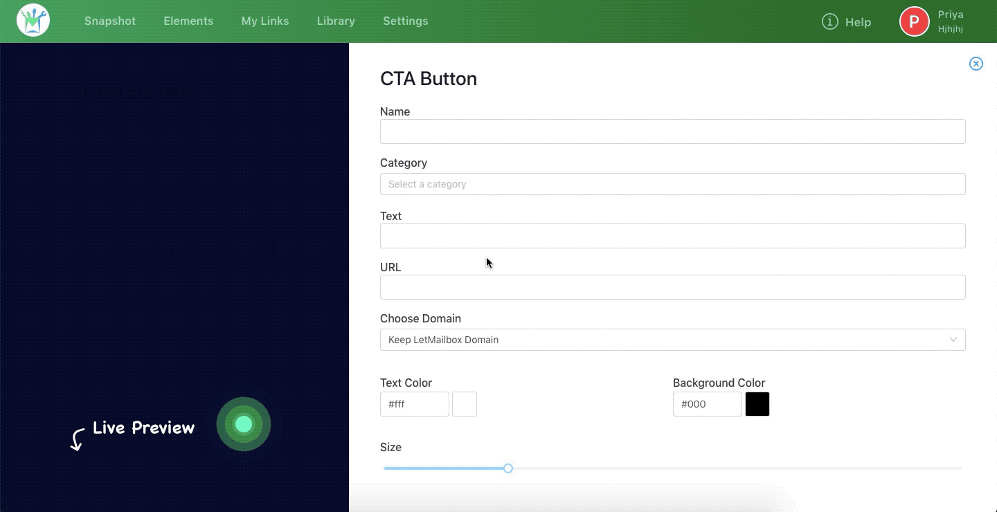 Step 1: In your LetMailbox dashboard, go to Create New Element >> Call to Action Buttons