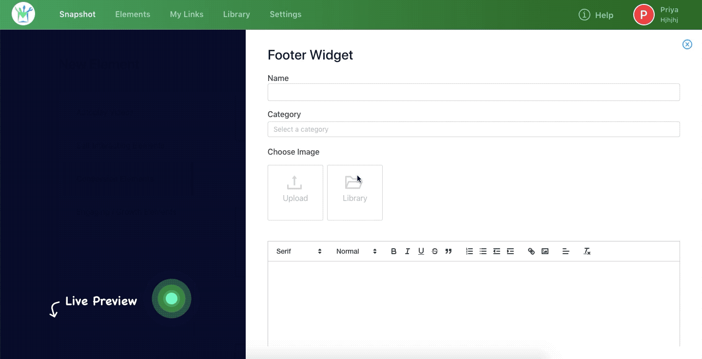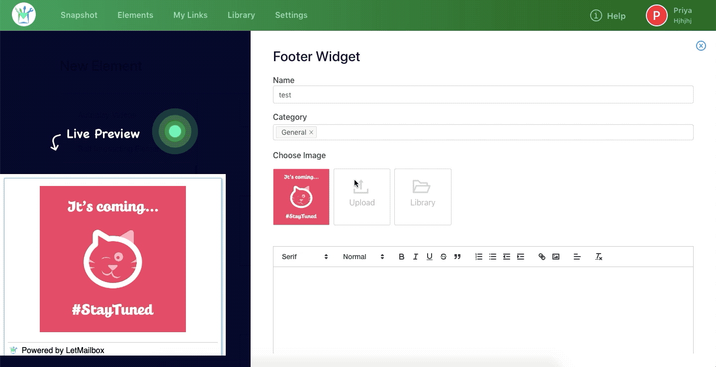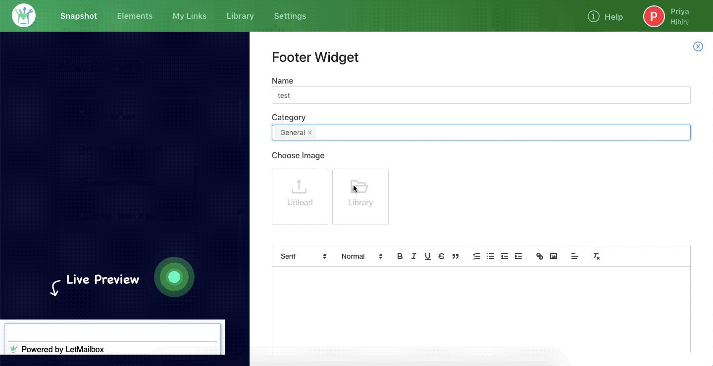 Step 1: In your LetMailbox dashboard, go to Create New Element >> Footer Widgets.