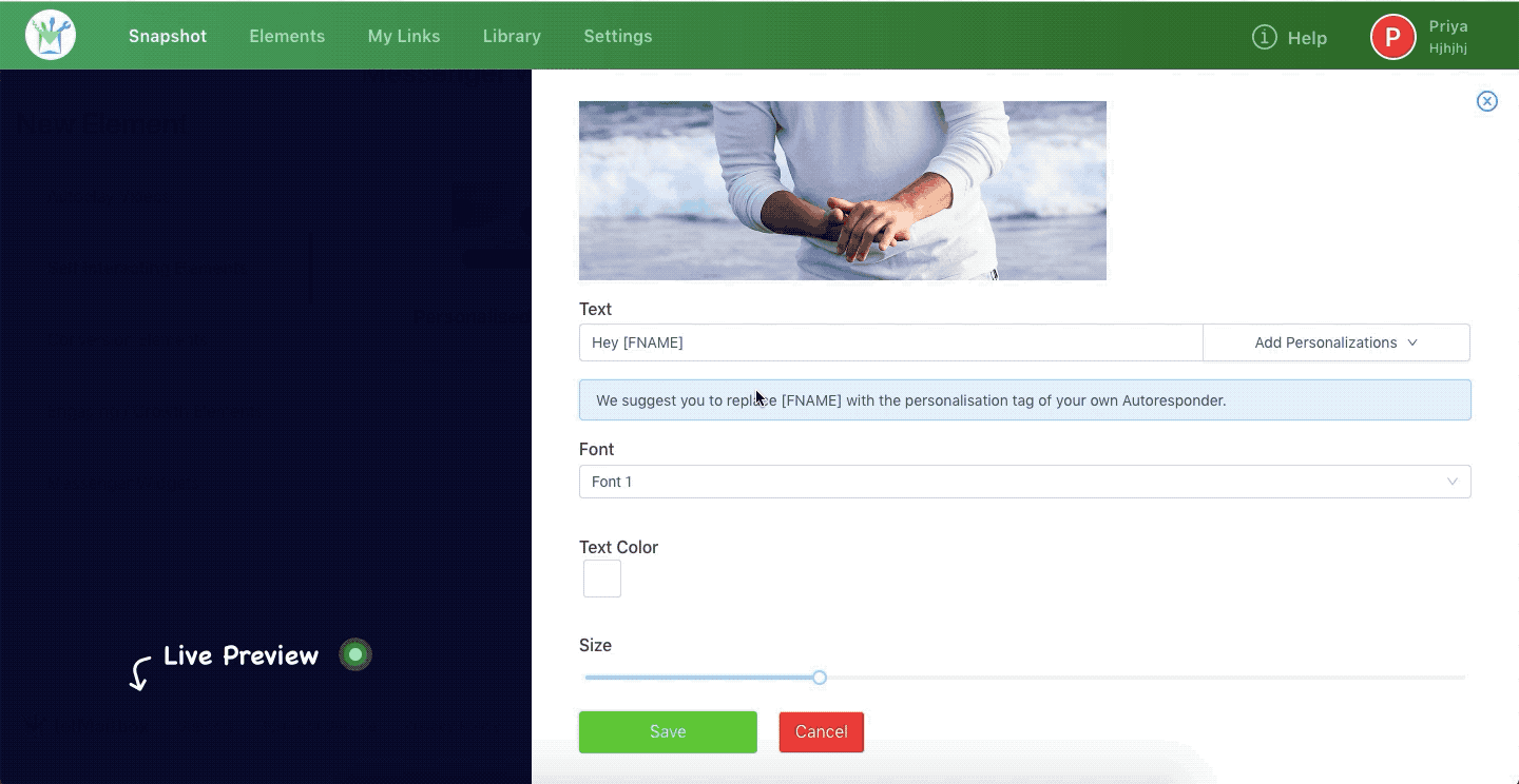 Step 4: Enter the text which you want to place over the image. You can also add personalization tags of your autoresponder here. For instance, Hey, *[FNAME]*