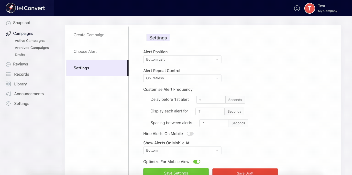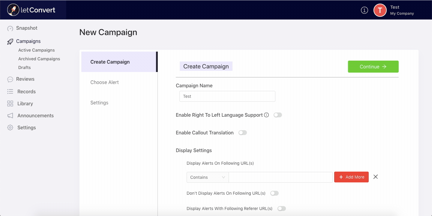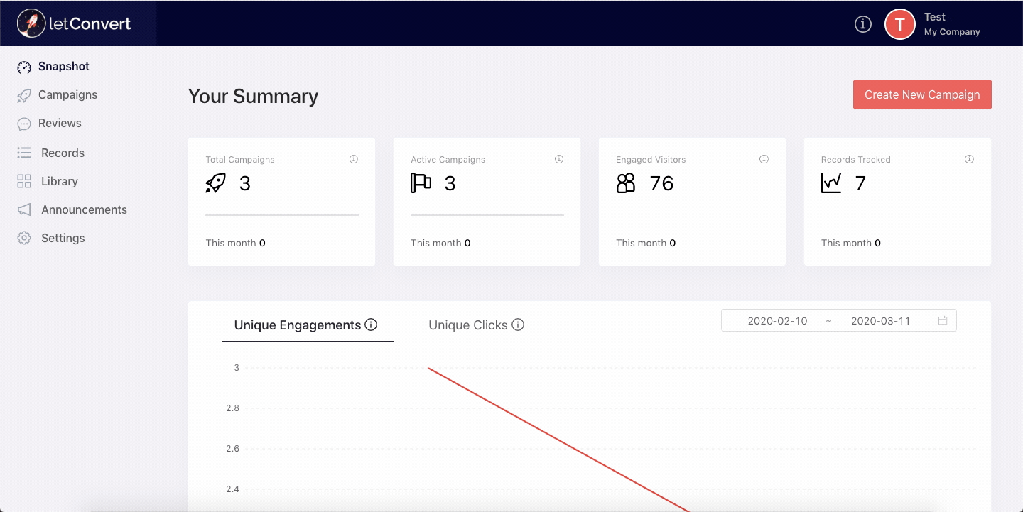 All you need to do is simply log into your LetConvert dashboard >> Create New Campaign >> 3 simple steps.