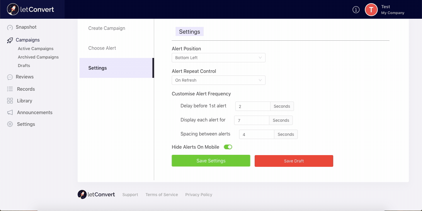 LetConvert now lets you create announcement alerts as well from within the dashboard. Create announcements and let your conversions roll.