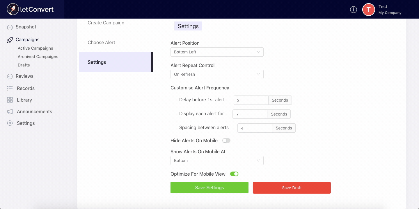 Once you are done with all the above steps, don’t forget to save the campaign by clicking on ‘Save Settings’.