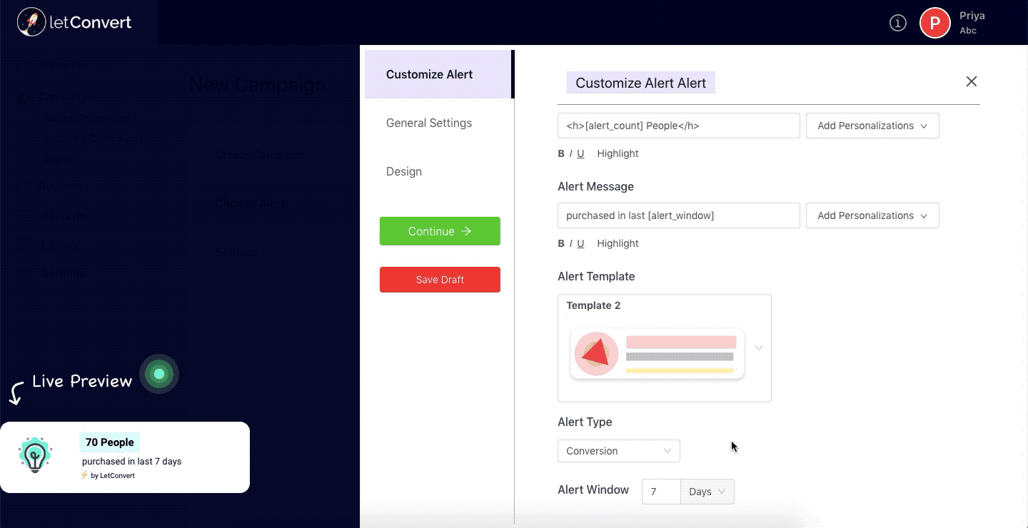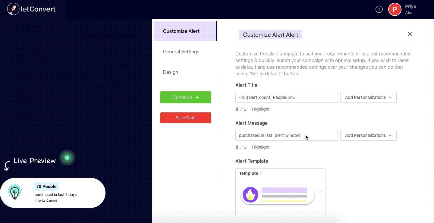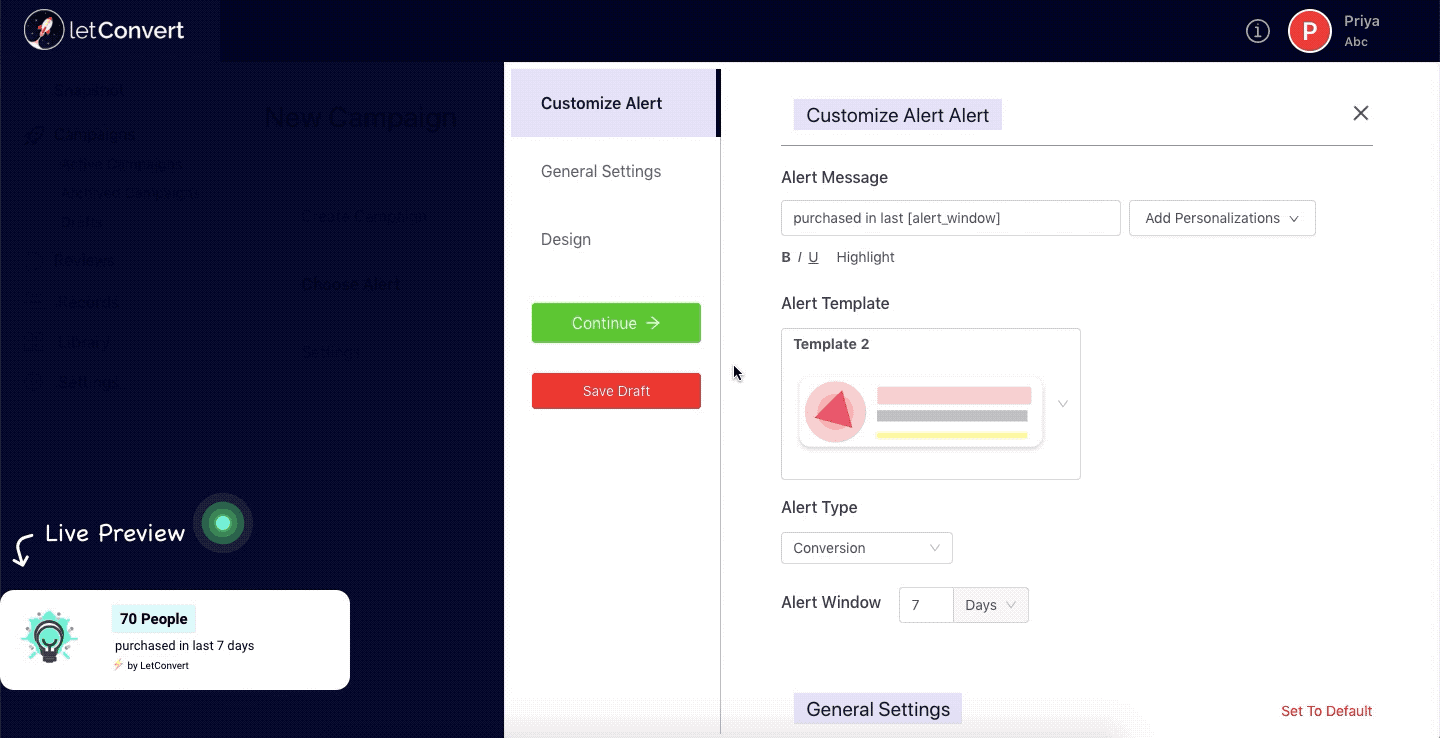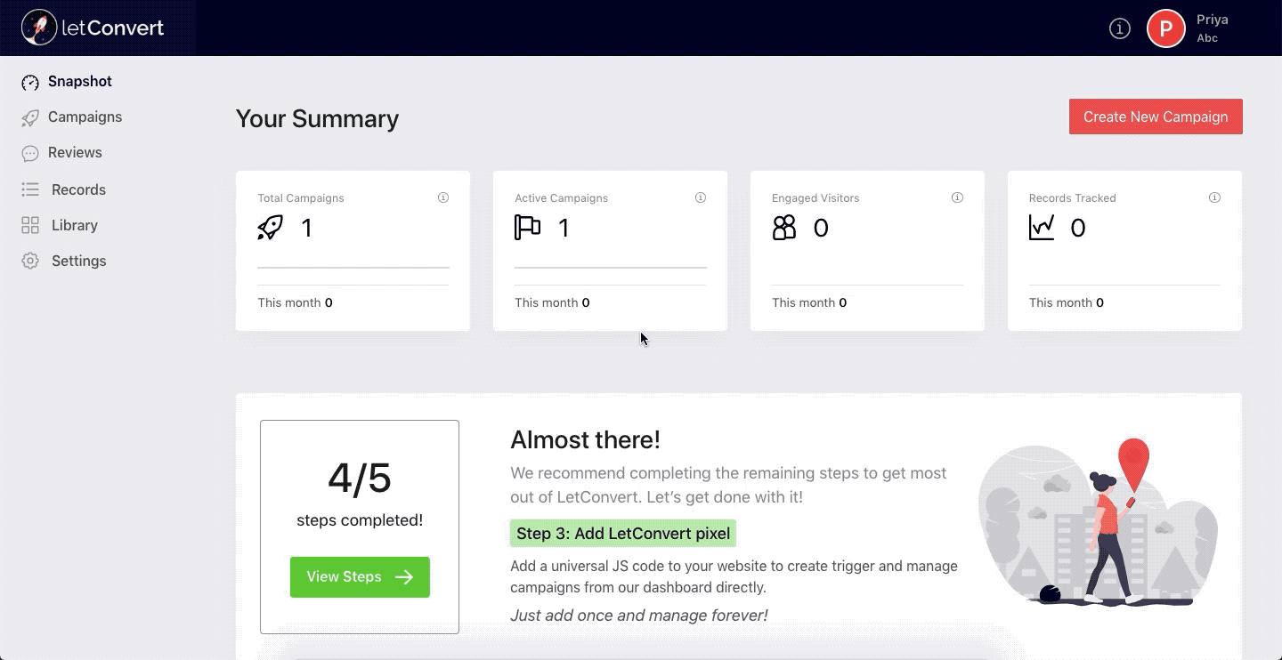 All you need to do is simply log into your LetConvert dashboard >> Create New Campaign >> 3 simple steps.