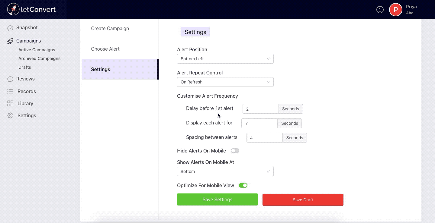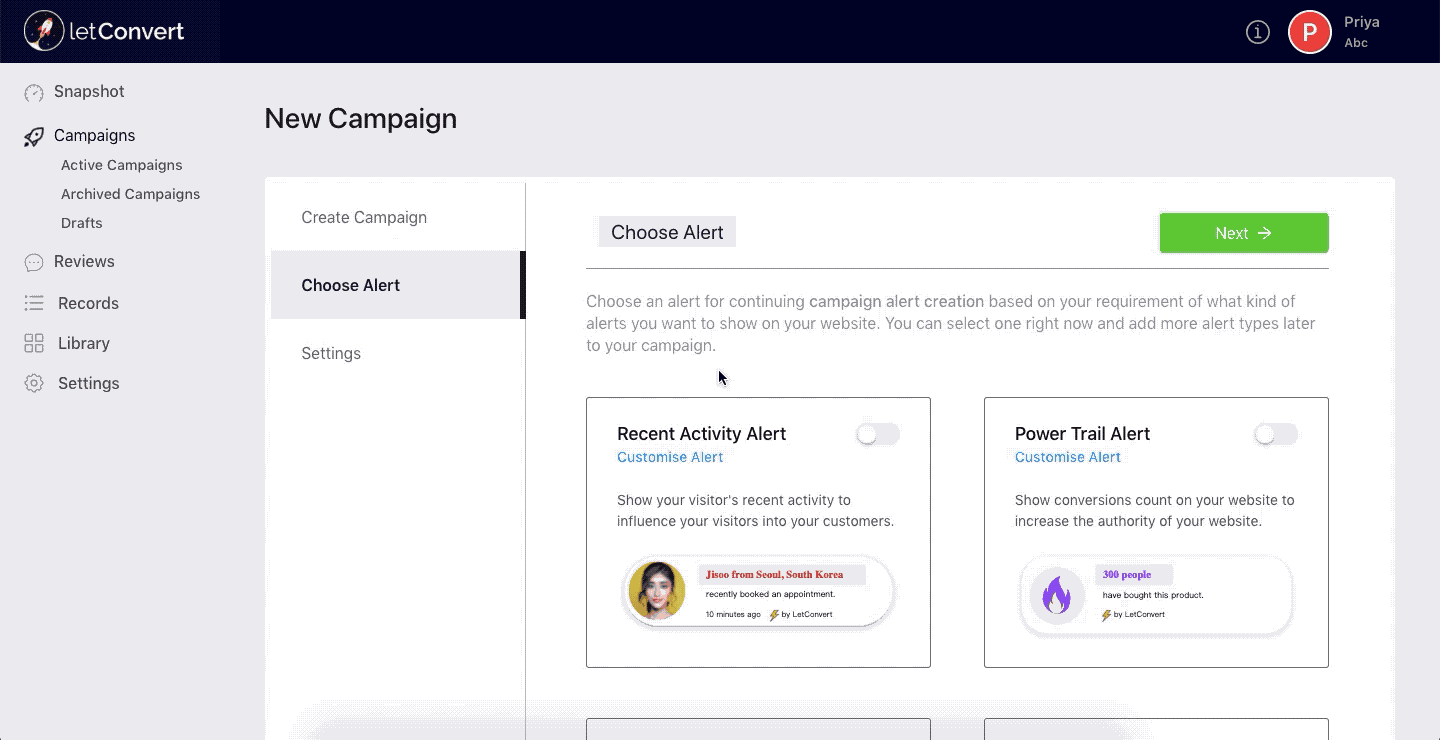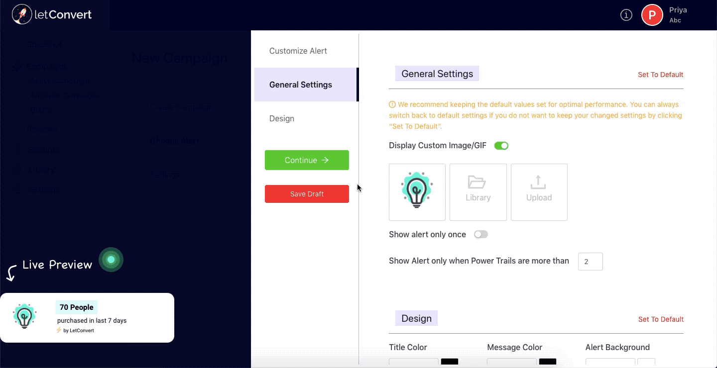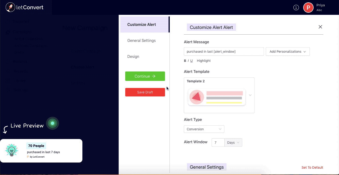 All you need to do is simply log into your LetConvert dashboard >> Create New Campaign >> 3 simple steps.
