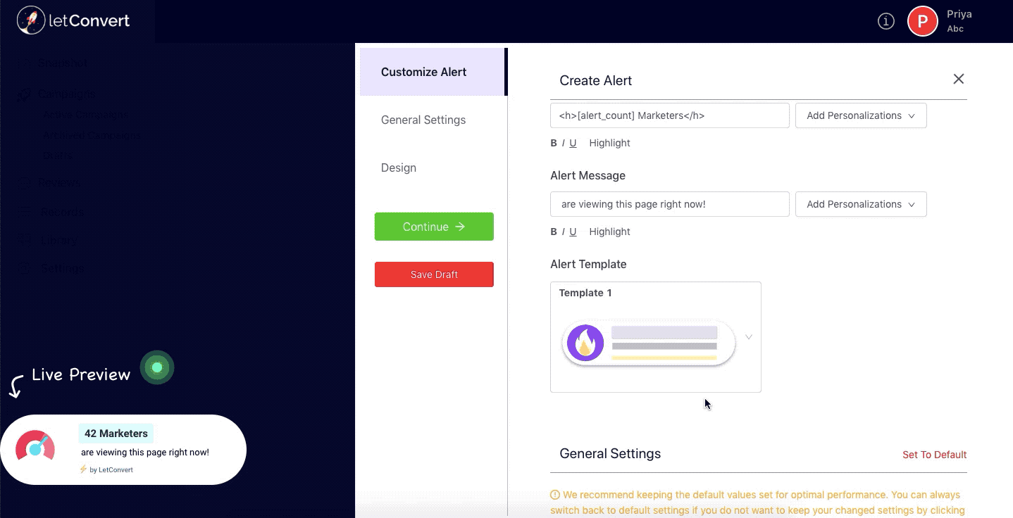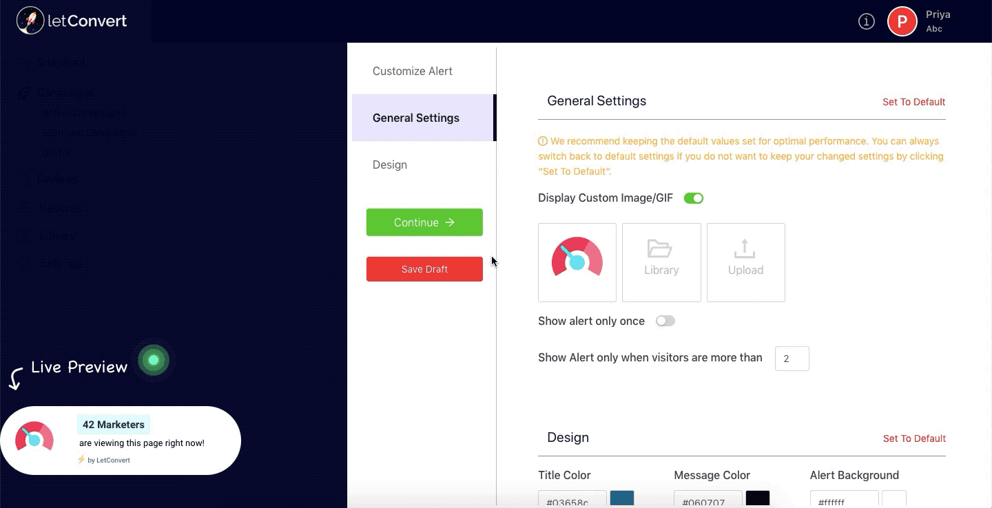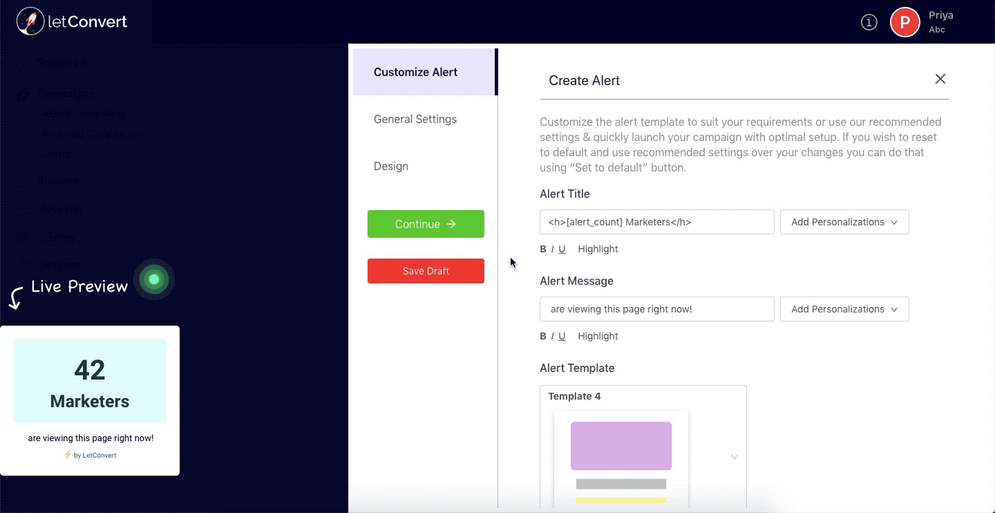 Now, to be able to create Real Time Visitor Count Alert, follow the steps listed below: