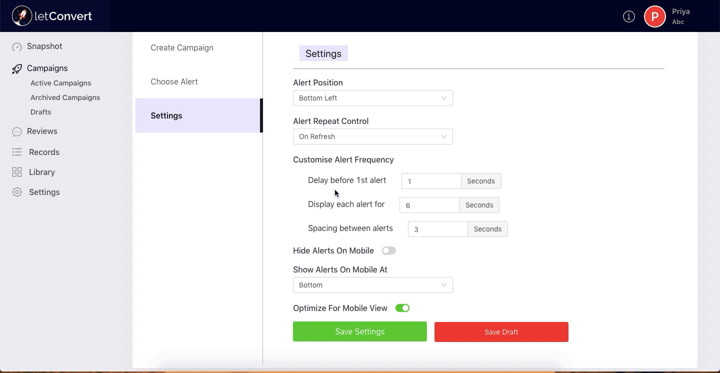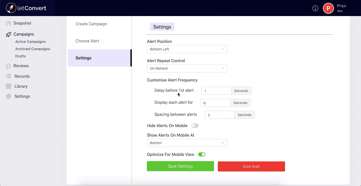 Note: You can also save the campaign as draft and can continue later.Step 4: Save the Settings