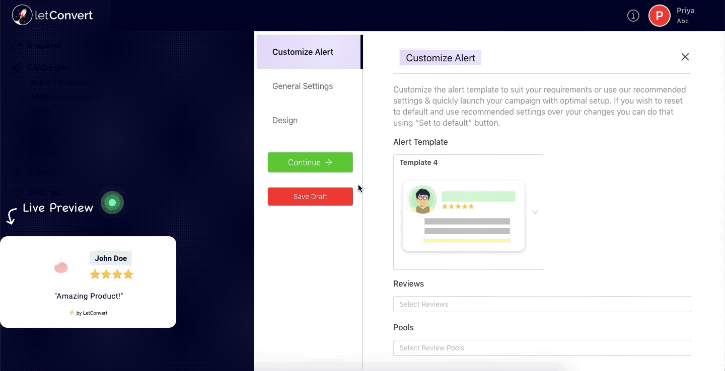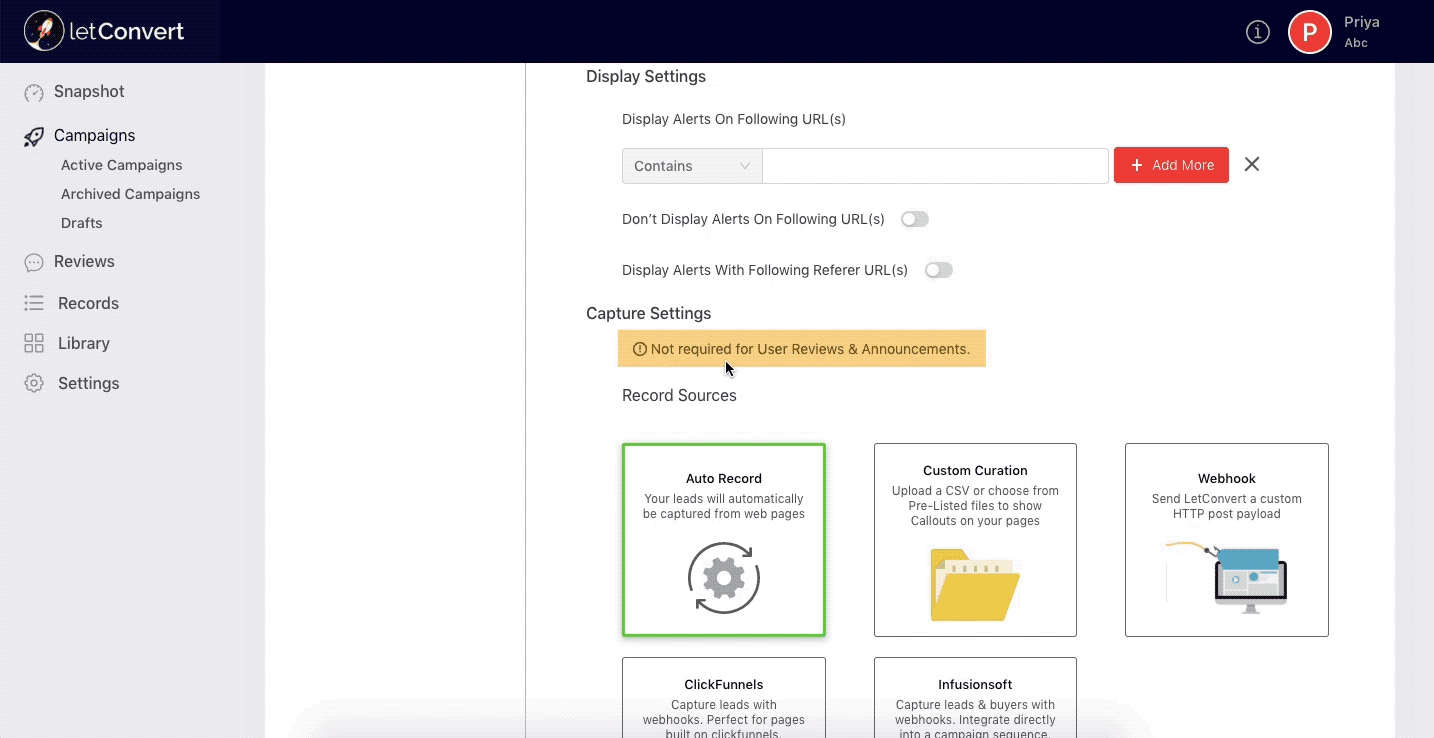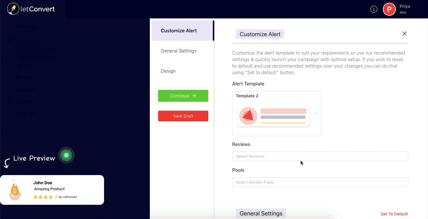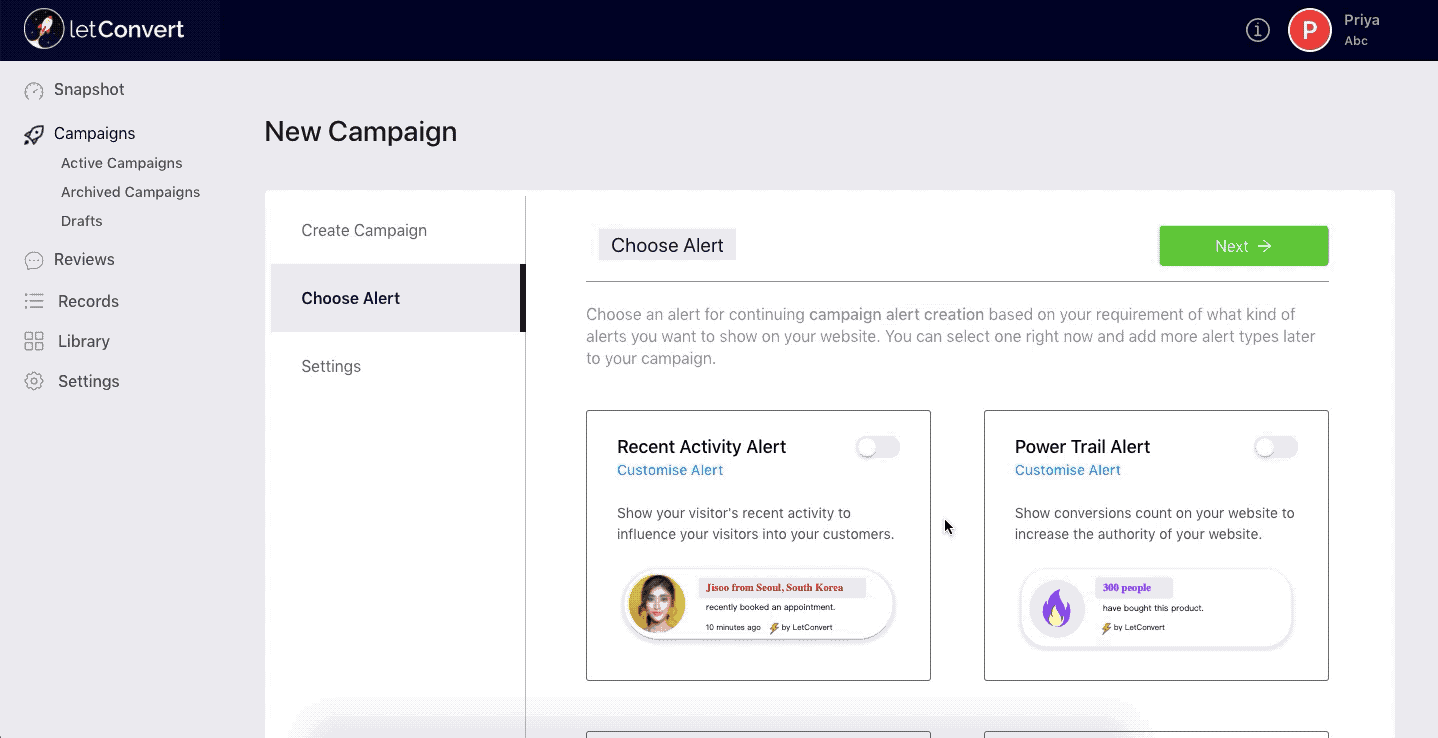 All you need to do is simply log into your LetConvert dashboard >> Create New Campaign >> 3 simple steps.