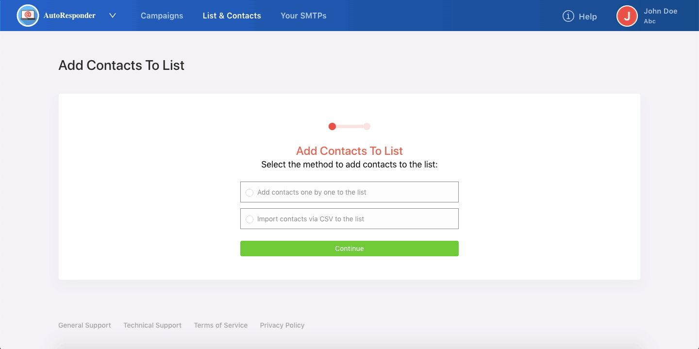 Now you have 2 options - either you can add the contacts one by one or you can directly fetch in bulk via a CSV file.