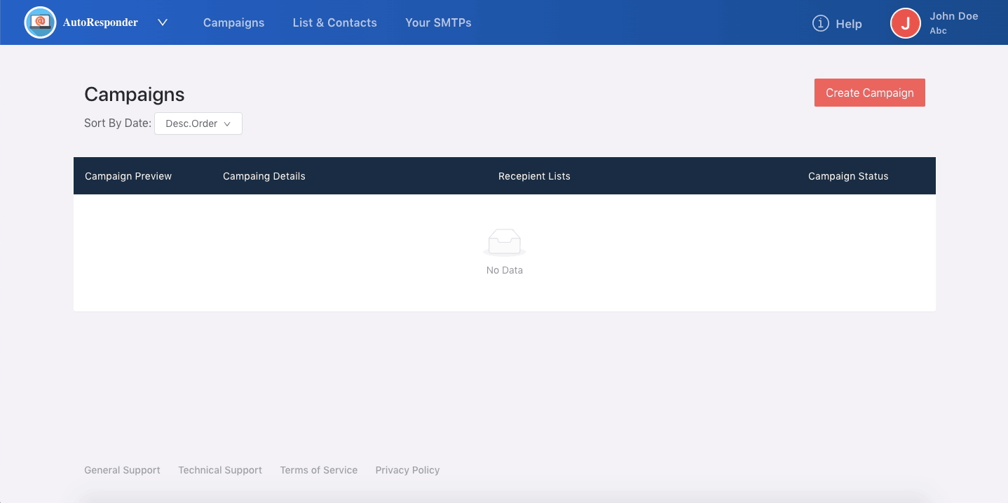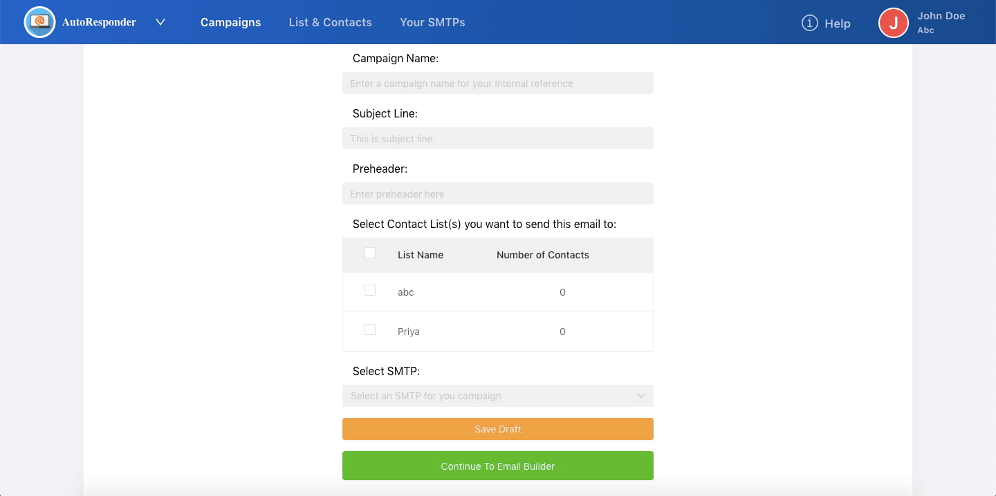 Every time you want to broadcast or run an email campaign, this is where you need to setup everything related to that particular campaign. To be able to create your Email Campaign, simply to go Campaigns >> click on Create Campaigns and Enter the required details.