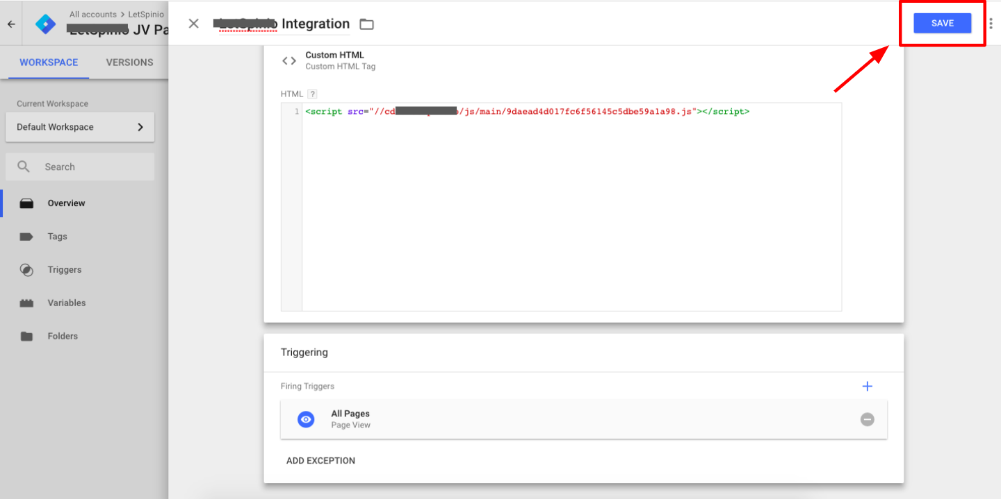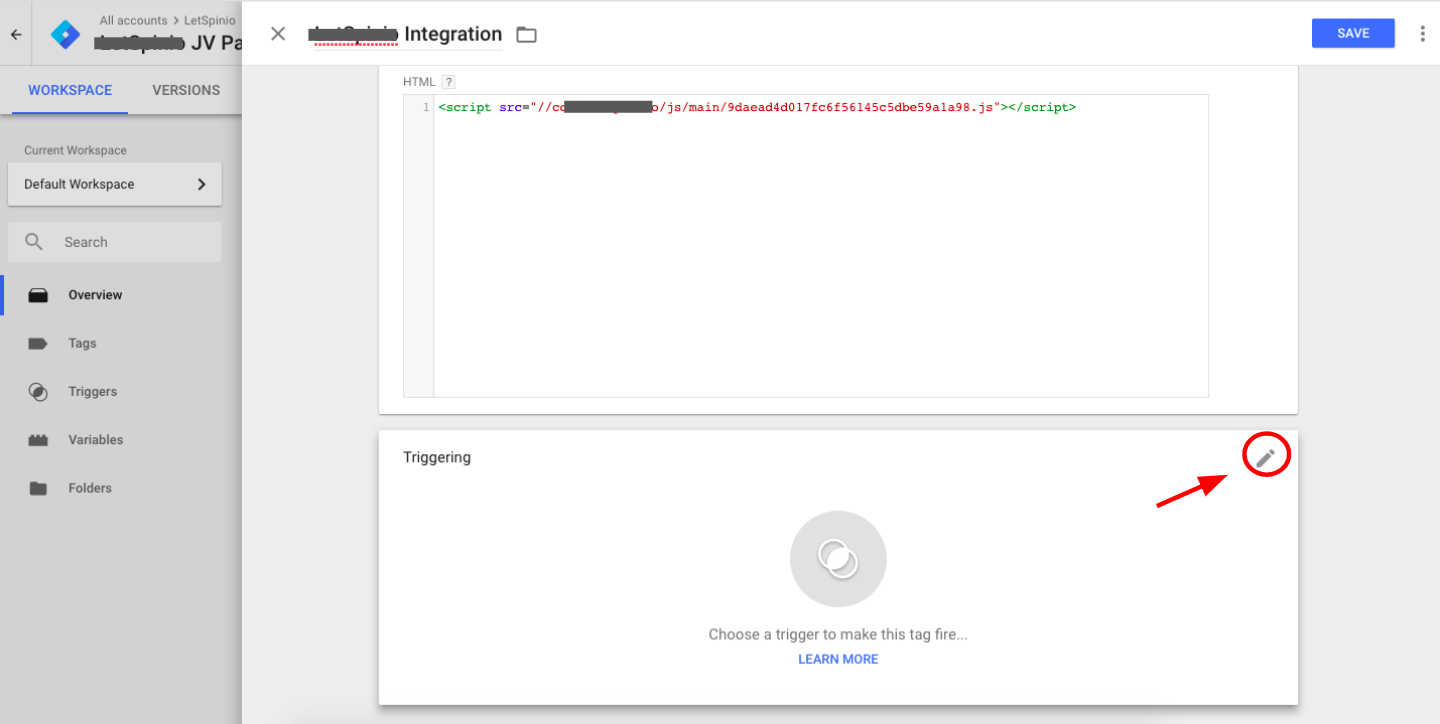 To be able to install LetSpin.io Code/Pixel on your website with Google Tag Manager, follow the steps below : STEP 1: In your Google Tag Manager account, go to Workspace, and select “New Tag”. STEP 2: A popup with open with the New Tag configuration ...