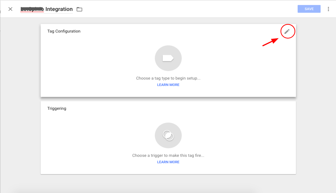 STEP 2: A popup with open with the New Tag configuration settings. Give “LetConvert Integration” as the Tag name and select the “Edit Icon” from the Tag Configuration section.