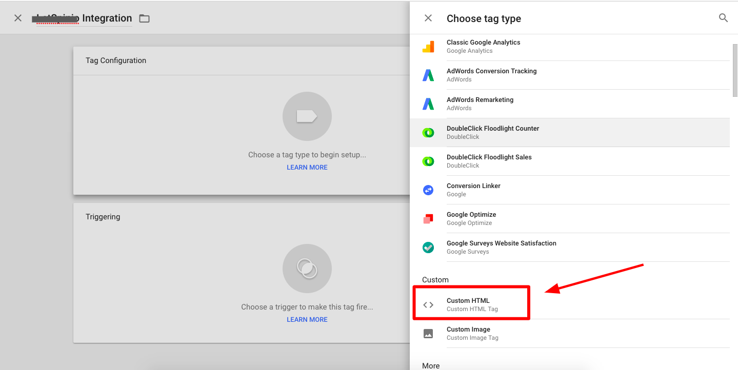STEP 3: Click on the “Custom HTML” Tag in the custom section and paste the LetConvert integration code.