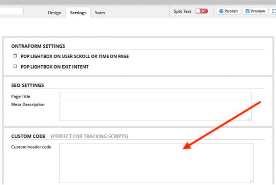 STEP 1: Add the LetConvert pixel to the ”custom header code” section on the Settings tab inside Ontraport.