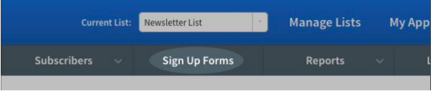 STEP 1: In the Navigation Menu, click on the "Sign Up Forms" tab. It is right between the Subscribers and Reports tabs.