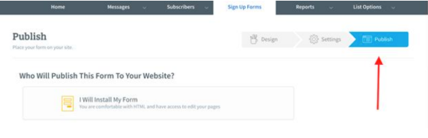 STEP 3: Scroll down to the section that says "Who Will Publish This Form To Your Website" and select "I Will Install My Form".