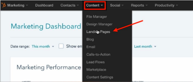 STEP 1: Log into your HubSpot Content editor and click on Landing Pages.