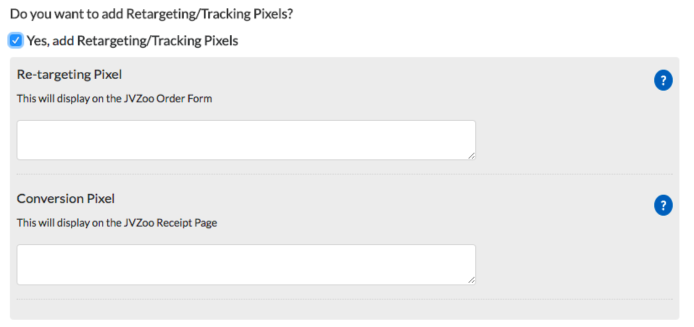 STEP 4: The product page will open. Go to Advanced Settings and click, Yes add Retargeting/Tracking Pixels.