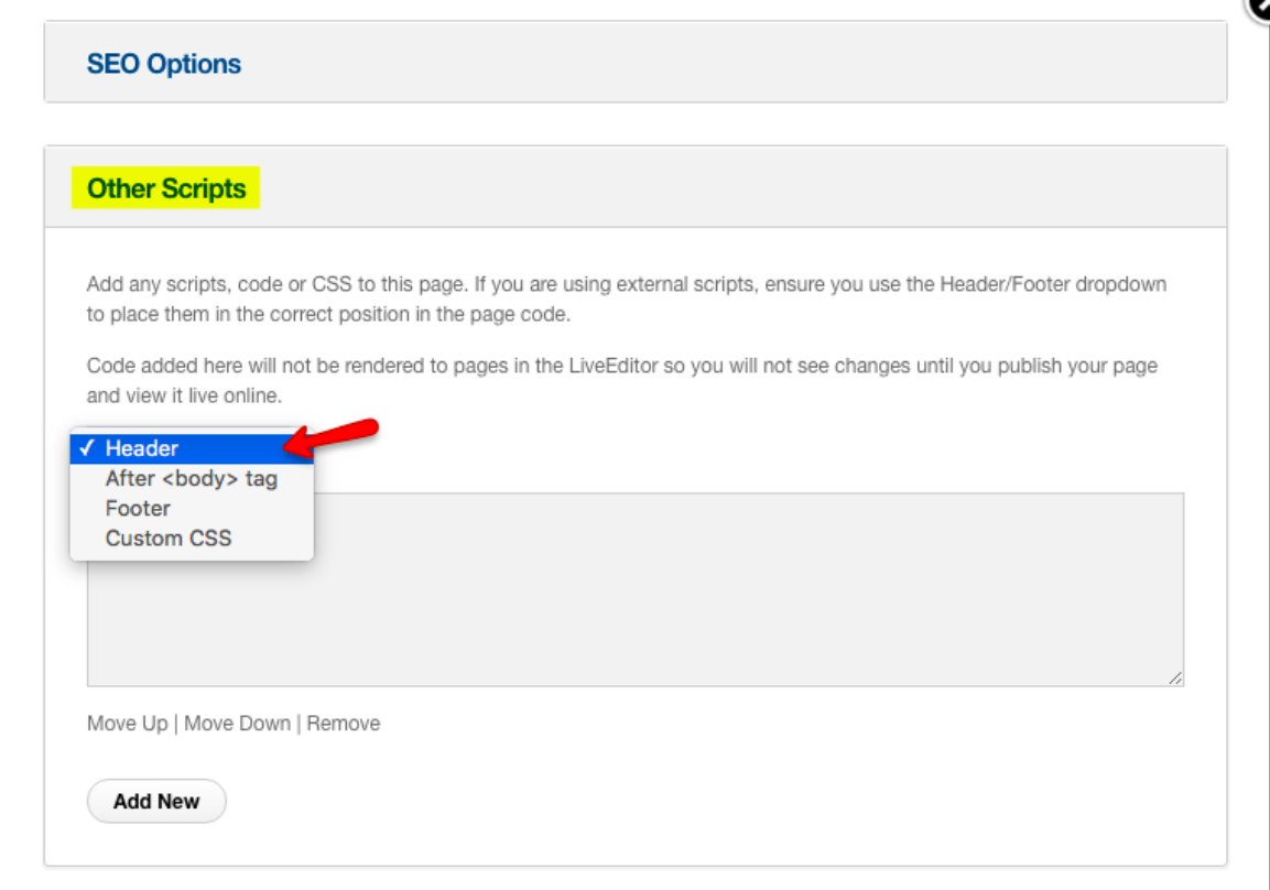 STEP 2: Click on “Other Scripts” and select “Header”.