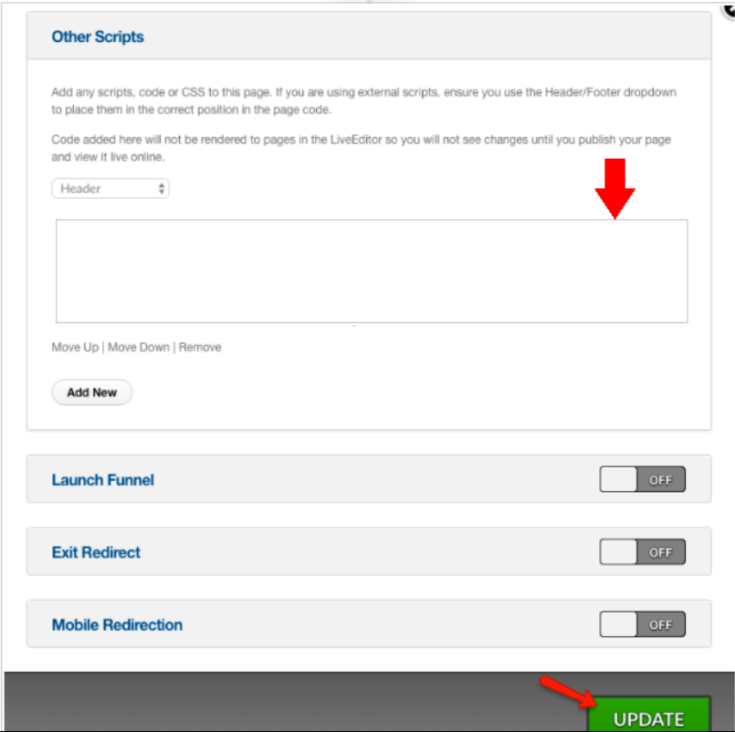 STEP 3: Paste your LetSetCom pixel into the Header box and click “Update”.