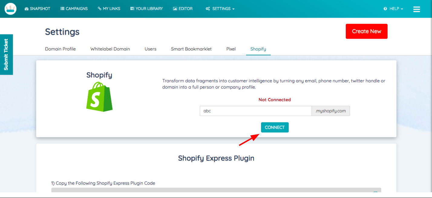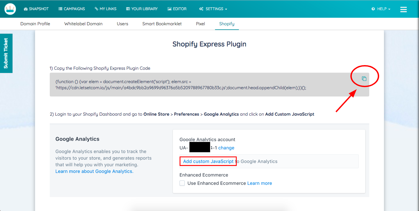 STEP 6: Now, copy the Shopify Express Plugin Code listed on the same page as shown in the screenshot.
