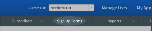 STEP 1: In the Navigation Menu, click on the "Sign Up Forms" tab. It is right between the Subscribers and Reports tabs.