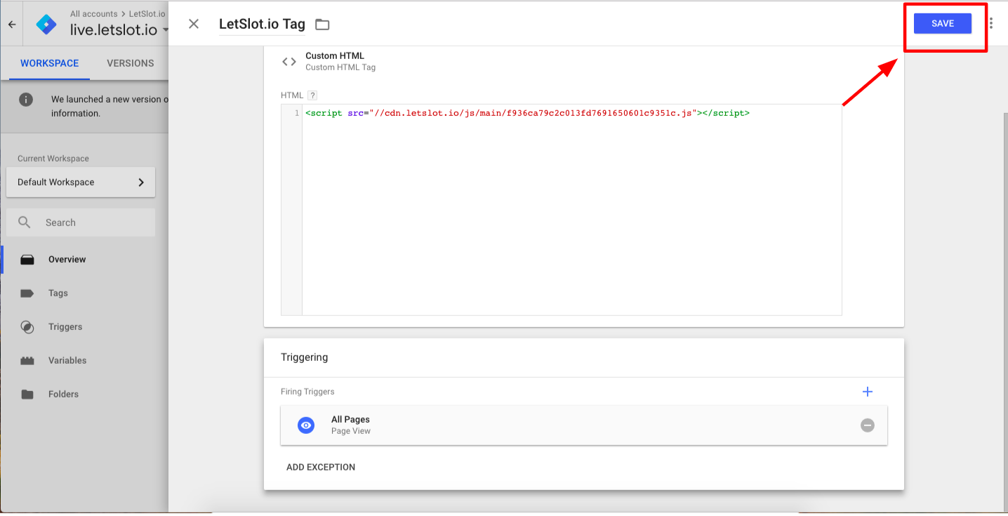 Install LetSlot.io Code/Pixel with Google Tag Manager