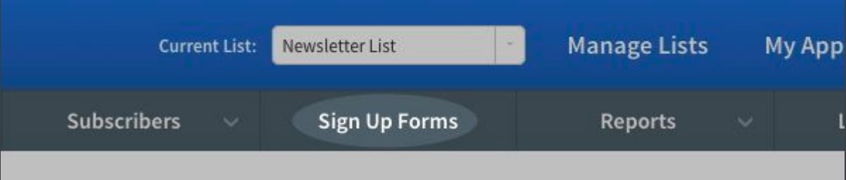 STEP 1: In the Navigation Menu, click on the "Sign Up Forms" tab. It is right between the Subscribers and Reports tabs.