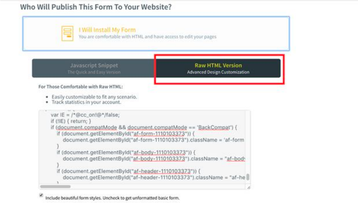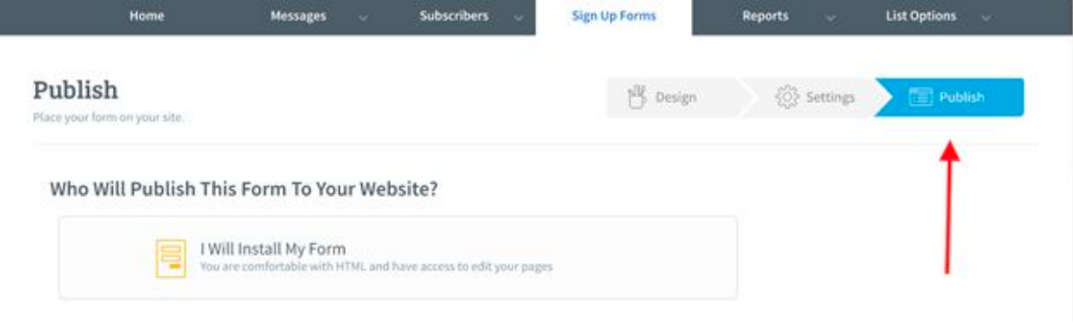 STEP 3: Scroll down to the section that says "Who Will Publish This Form To Your Website" and select "I Will Install My Form".