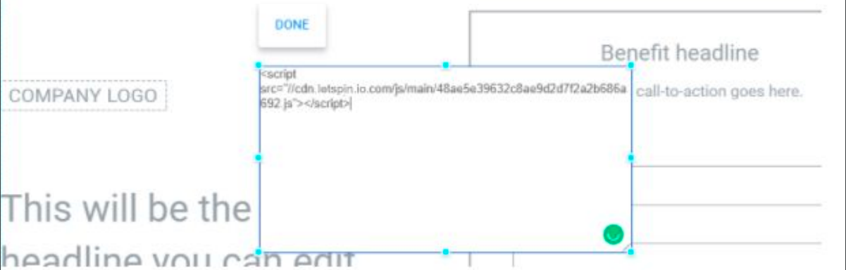 STEP 5: Paste the LetSpin.io pixel code in the box and click 'Done'.