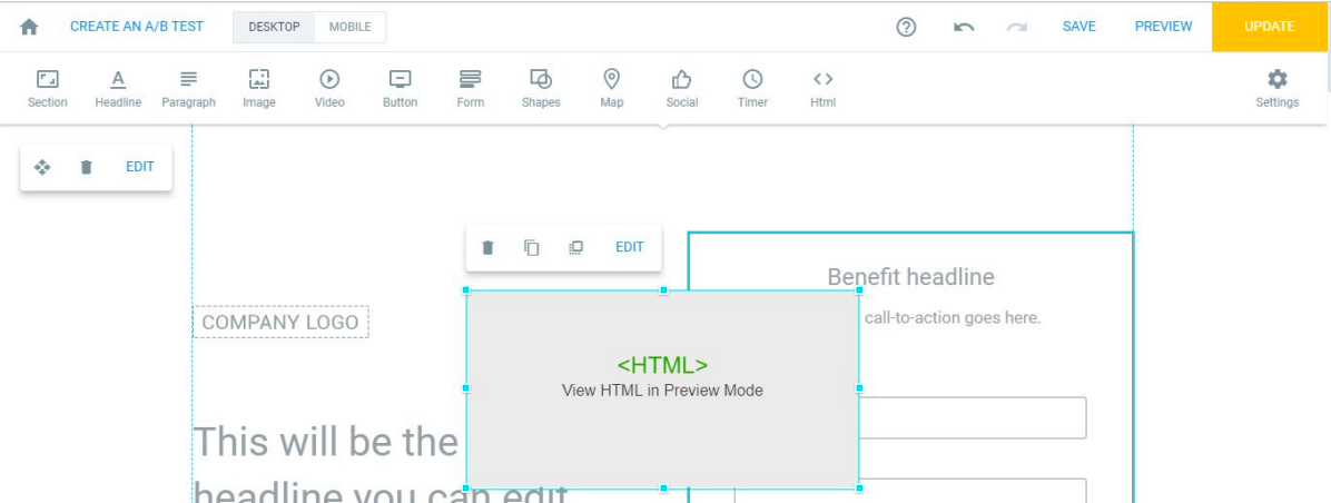 STEP 3: Select the 'HTML' icon in order to add a new HTML element to your page.