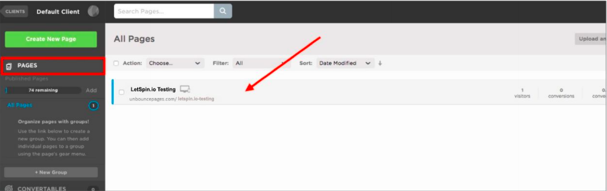 Install LetSpin.io code/pixel with Unbounce