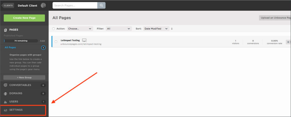 STEP 1: Log into your Unbounce account and Go to the "Settings" tab.