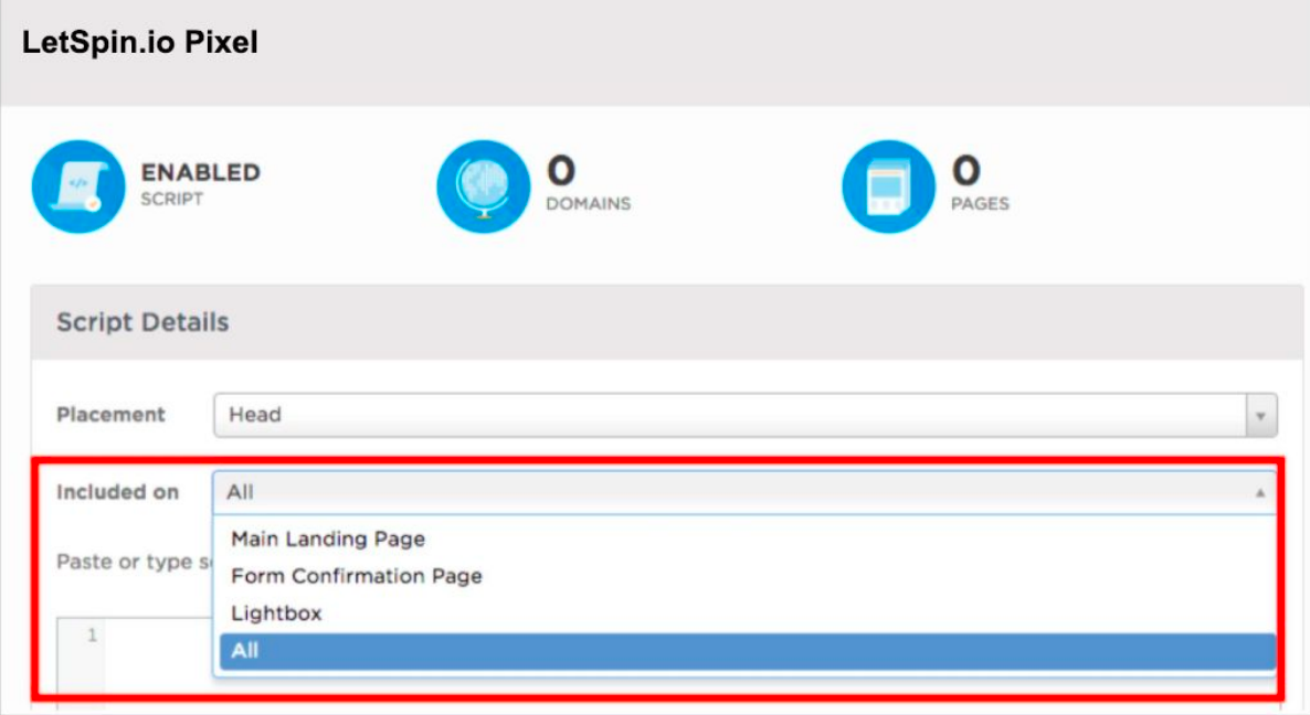 To be able to install LetSpin.io Code/Pixel in your website with LeadPages, follow the steps below : STEP 1: Open your Leadpages Page Editor and place the tracking pixel in the "Header" section under Tracking > Analytics. STEP 2: If you are using ...