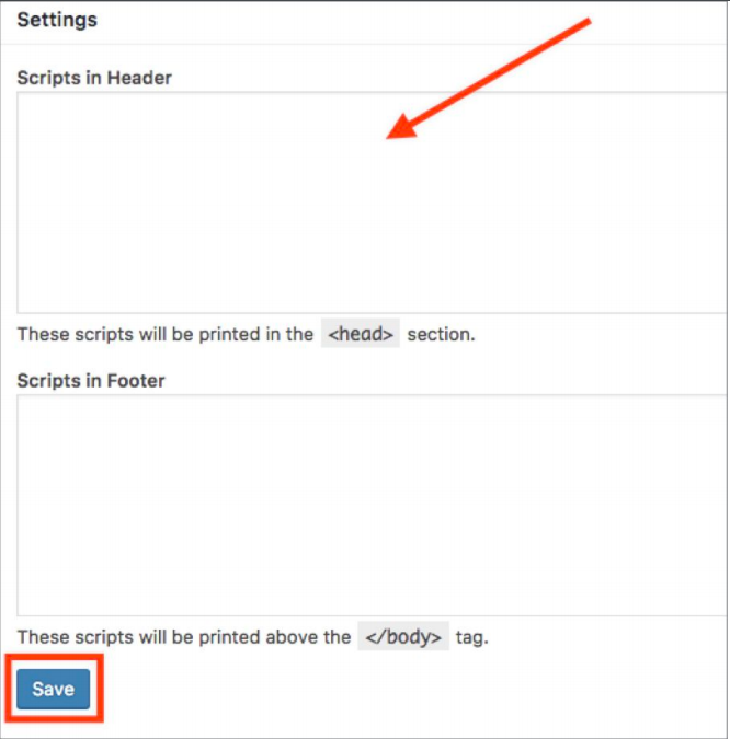 STEP 5: Paste the LetSpin.io code in the "Scripts in Header" box and click 'Save.'
