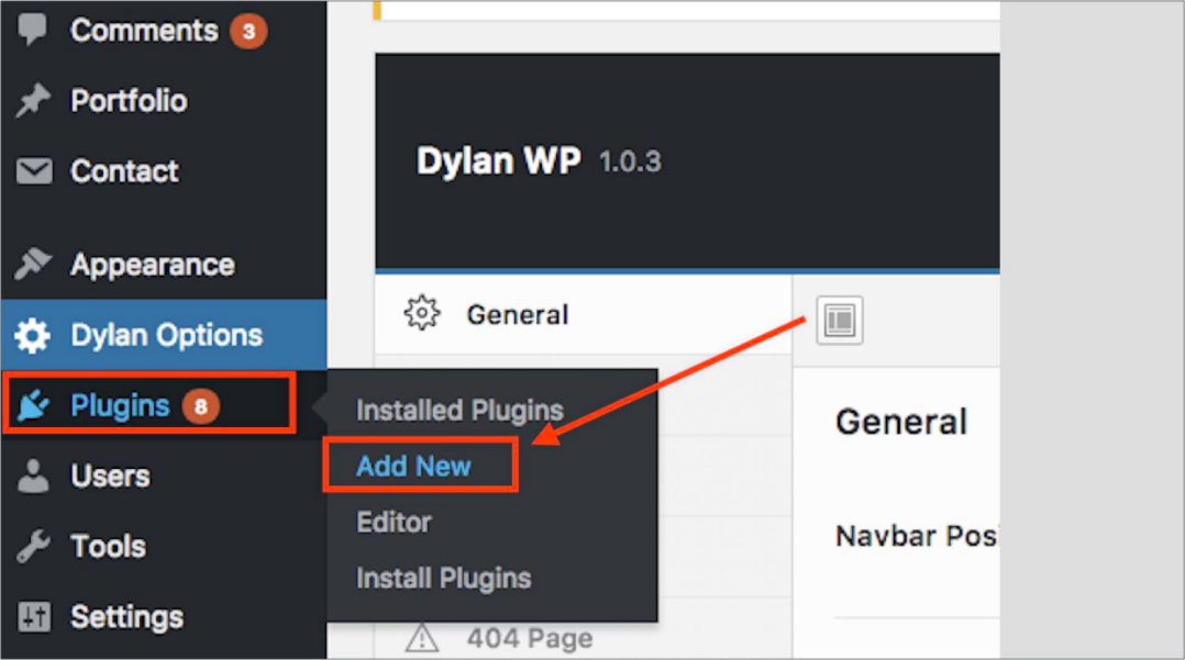 STEP 1: Log into your Wordpress account, Go to the "Plugins" tab, and select "Add New" from the menu.