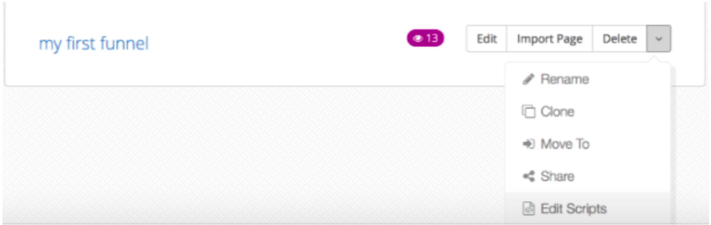 STEP 1: In the Funnels screen, click the dropdown arrow next to your funnel name, and click Edit Scripts.