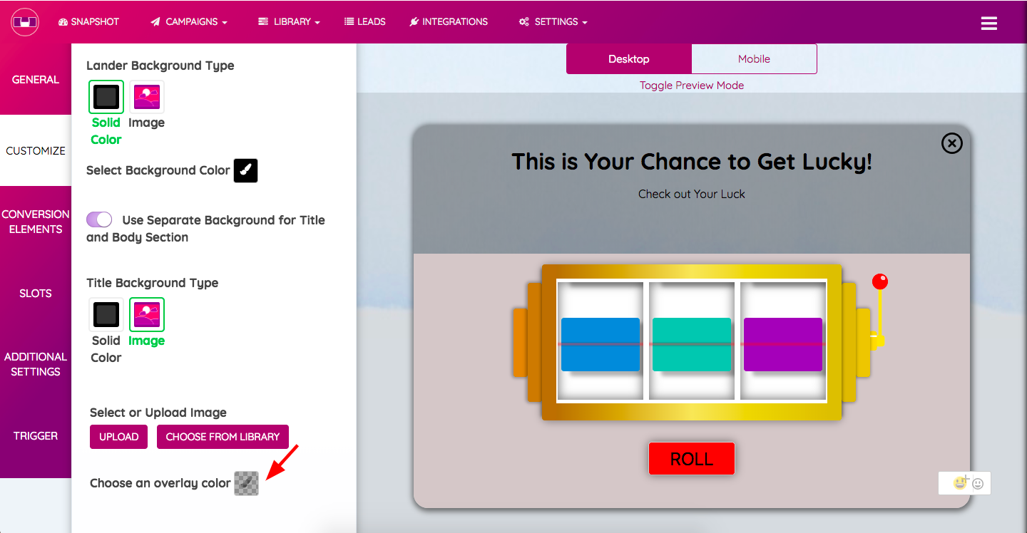 In Overlay Campaign, you can leverage the third party’s website and can choose to display the Slot Machine on their website. In order to set up an “Overlay Campaign”, follow the steps listed below: STEP 1: In your LetSlot.io Dashboard, click on ...