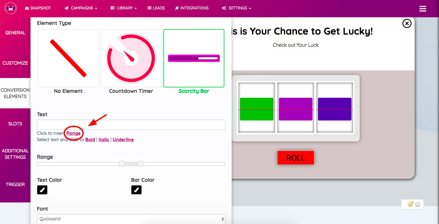 I. Font Family: Under this section, you can choose the font of the text in the Slot Campaign.