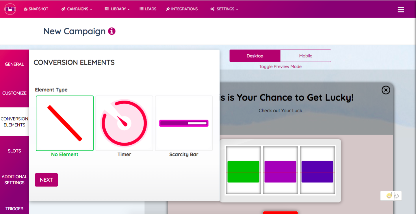 A. No Element: If you do not wish to add any conversion element to your campaign, then simply select this and click on Next.