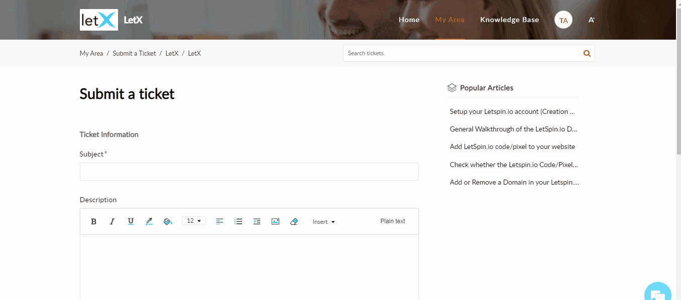 After you have filled in the following details, just click submit and a ticket will be created