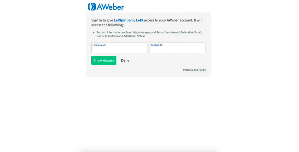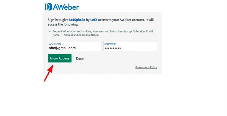 In order to Sync Leads with Aweber, follow the steps listed below- STEP 1: In your LetConvert dashboard, go to Settings >> Integrations >> Aweber. STEP 2: Enter your Login Name & Password and click on ‘Allow Access’. Note: To be able to sync leads ...